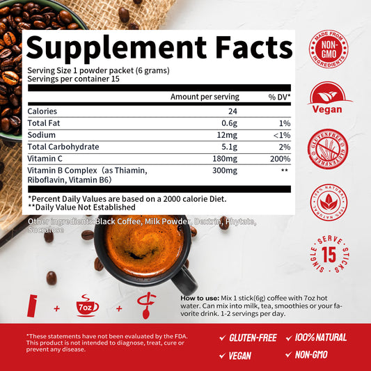 Mutsweet Instant Coffee Packets with Vitamin B Complex and Vitamin C